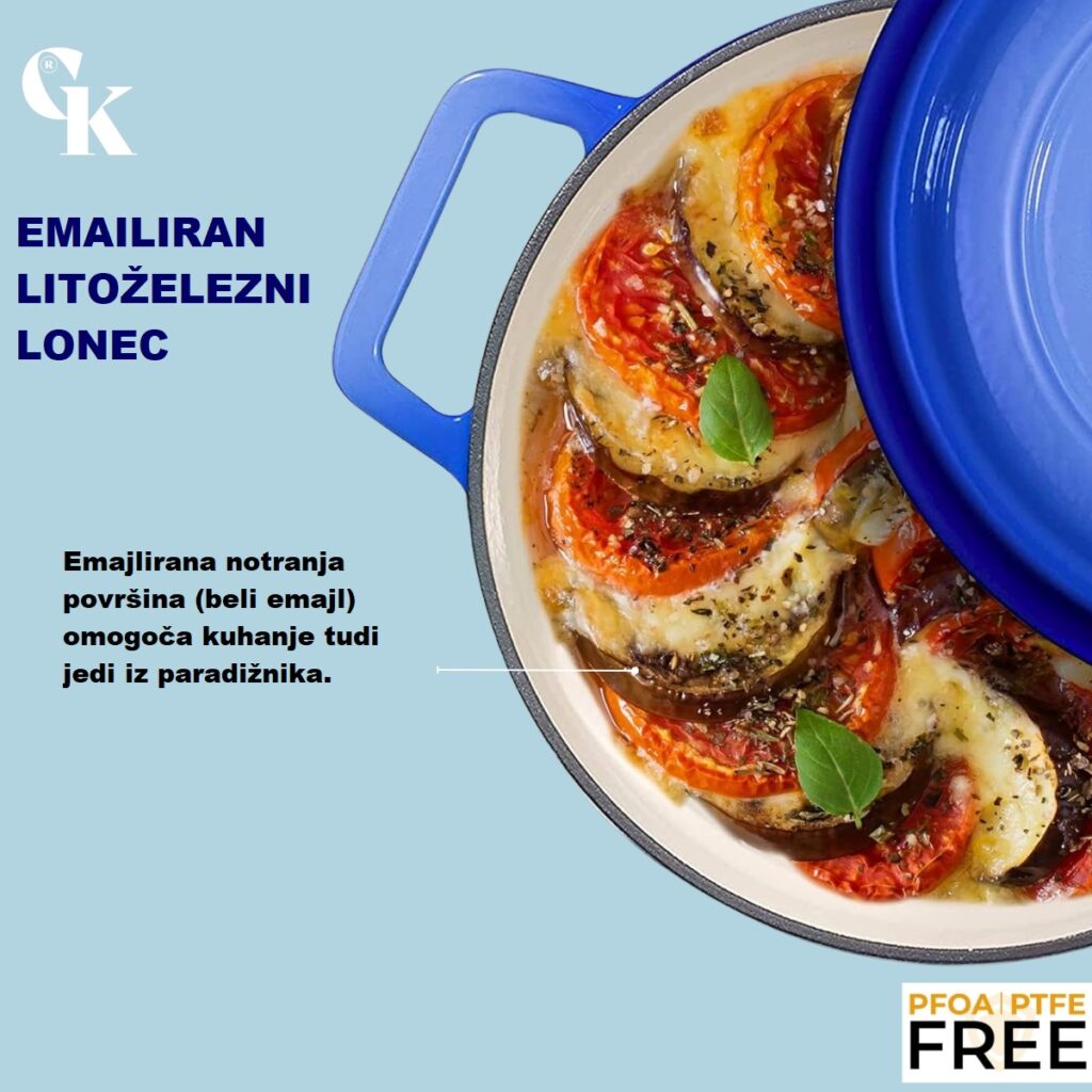 Emajlirana litina (gus) je dragocen in robusten material, ki se dobro prilagaja vsem vrstam priprave in kuhanja hrane. Še posebej priporočljivo za dolgotrajno kuhanje pri nizki temperaturi, pa tudi za cvrtje. Lito železo (gus) je najbolj primerno v kuhinji zaradi svoje sposobnosti enakomernega in učinkovitega segrevanja ter funkcije pokrova, ki je zasnovan in oblikovan tako, da zadrži paro, ki naravno nastaja iz hrane in se na hrano odziva nazaj, je še posebej razburljivo.
