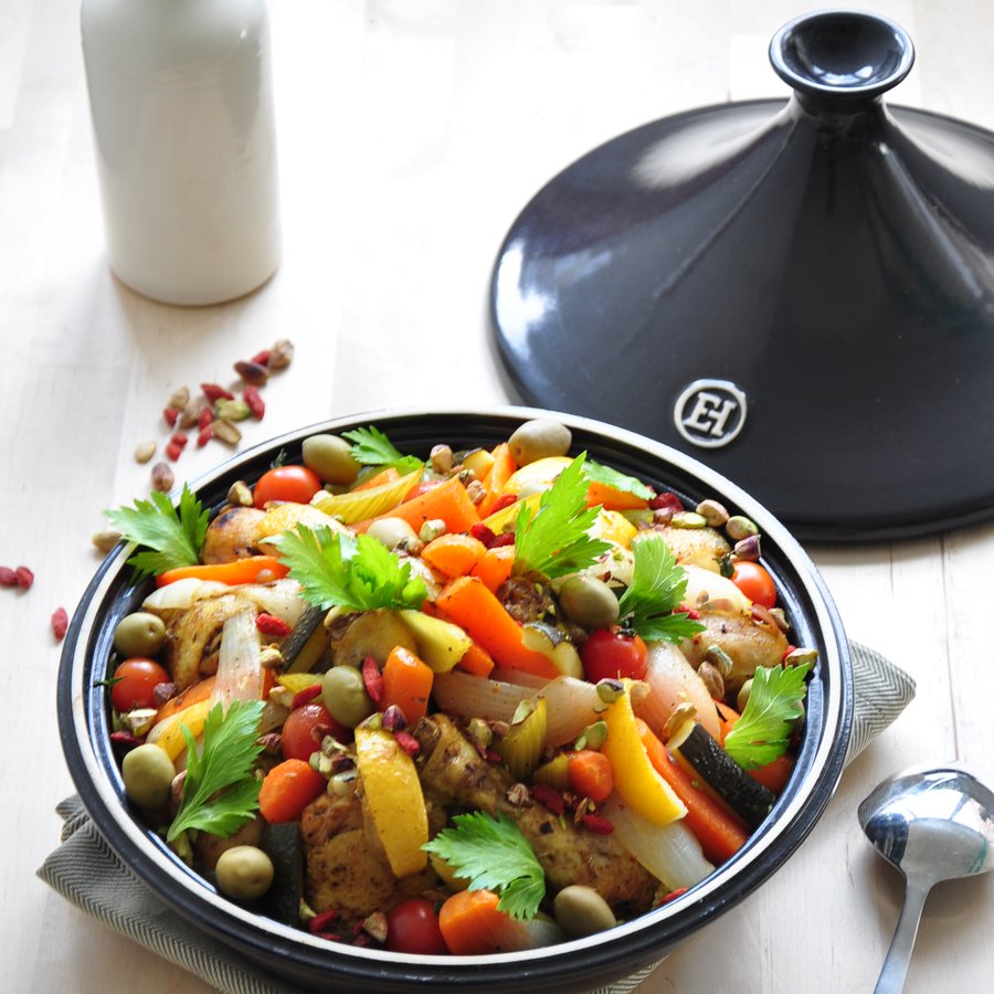 Tajine je zasnovan za izboljšanje jedi s toplino, okusom in velikodušnostjo. Ker so najboljši tagini vedno preprosti! Izberite sestavine, ki vas navdihujejo in spodbujajo vaša čustva: konzervirane limone z vrta, sveži datlji, sočni citrusi in drugo, vse okusno prepojeno s toplimi, dišečimi začimbami.