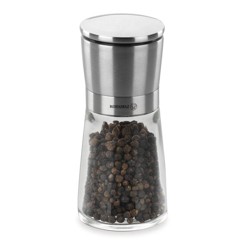 Mlinček za poper Pepenero KORKMAZ s keramičnim mehanizmom iz nerjavečega jekla (18/10) in akrila. Zasnovan za ohranjanje dolgotrajne svežine.