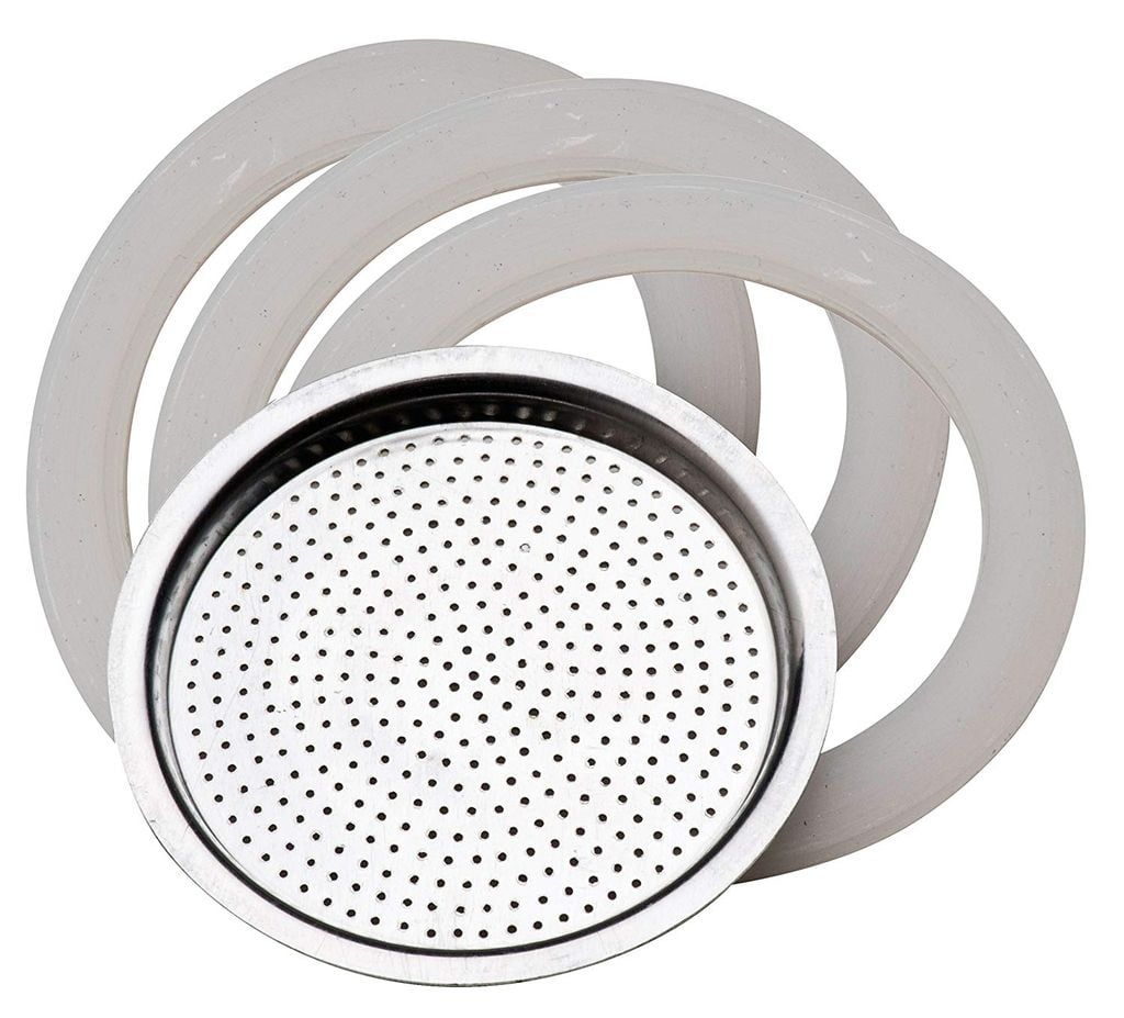 Set silikonskih tesnil in filtra iz nerjavečega jekla za indukcijski kavni kuhalnik za 6 skodelice.