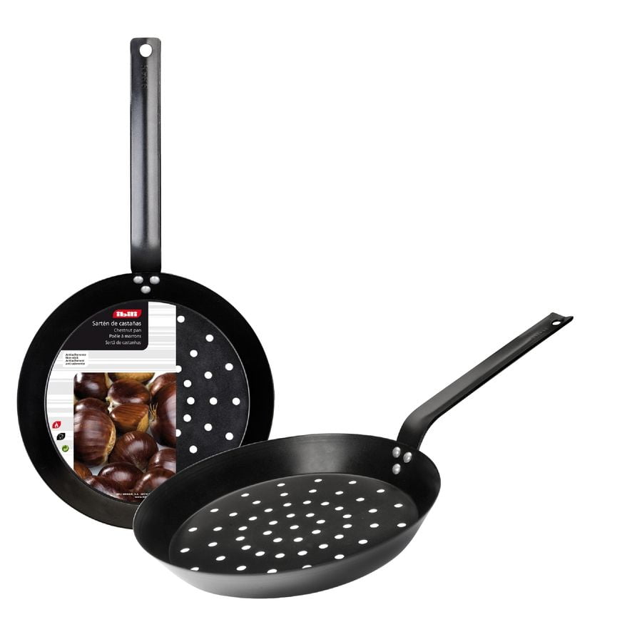 Ponev za kostanj IBILI, ki je primerna za električne in plinske štedilnike. Premer 26 cm, višina 3,5 cm.