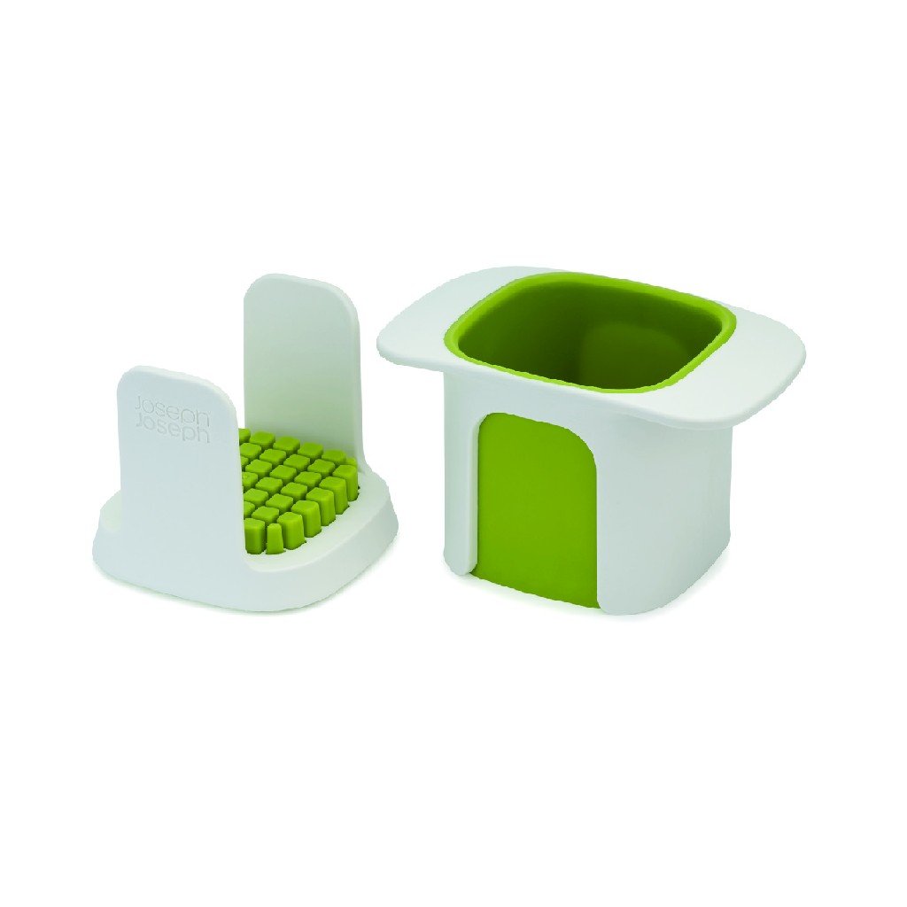 Popoln za sekljanje čebule in pripravo čipsa ali palčk iz krompirja, korenja in bučk Rezila iz nerjavečega jekla Med rezanjem zbira narezane koščke Enostaven za uporabo Razstavljiva za enostavno čiščenje Primerno za pomivalni stroj brez BPA Pozor, ostro Barva: bela/zelena