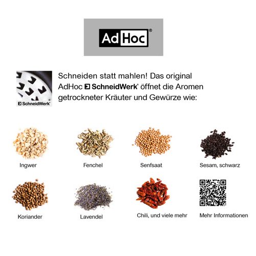 Mlinček za začimbe Duospice ADHOC s sistemom AdHoc Precise Cut in keramičnim mlinčkom.