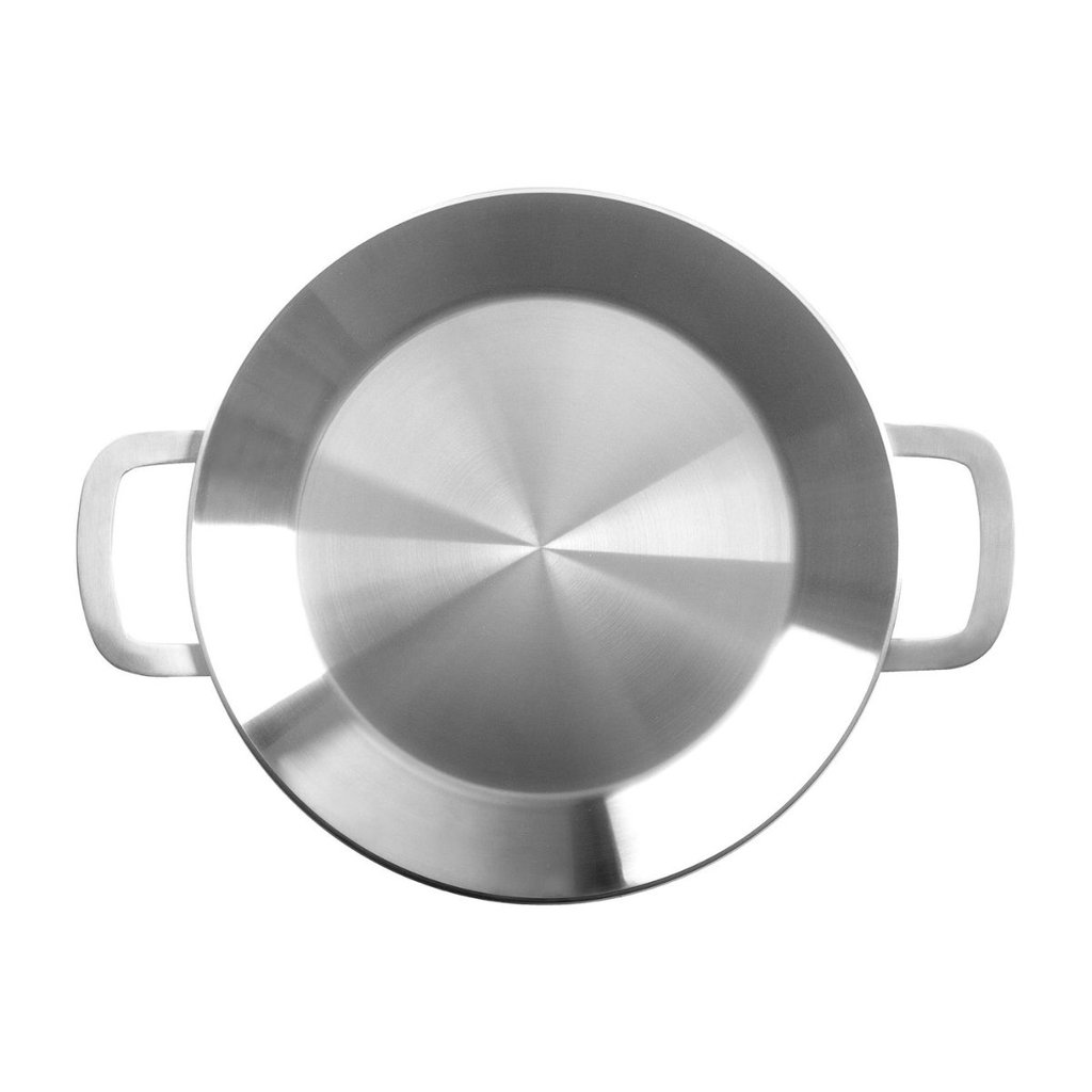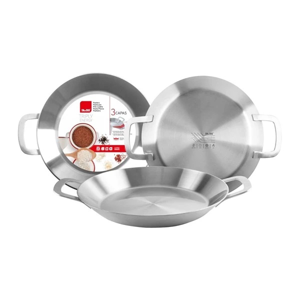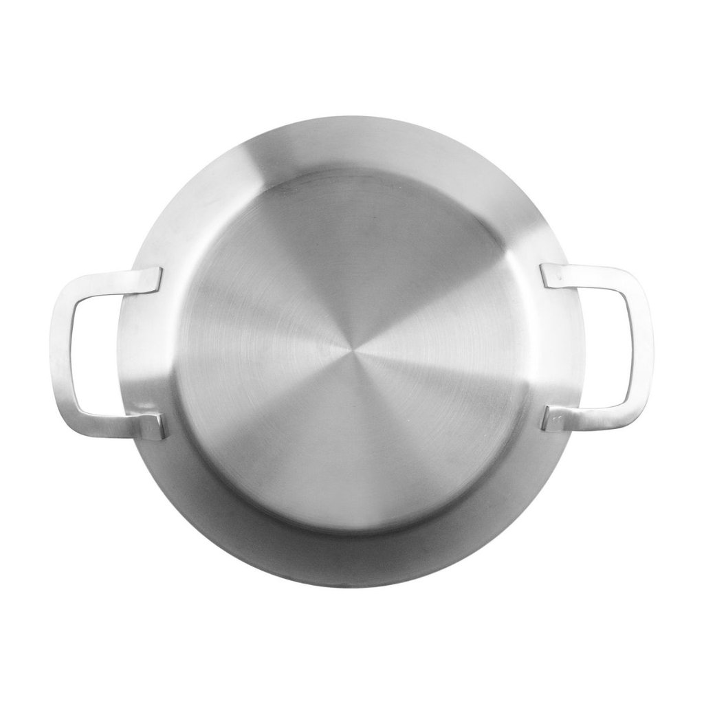 Trojno dno (nerjaveče jeklo, aluminij, nerjaveče jeklo) zagotavlja enakomerno porazdelitev toplote in odlične rezultate kuhanja.
